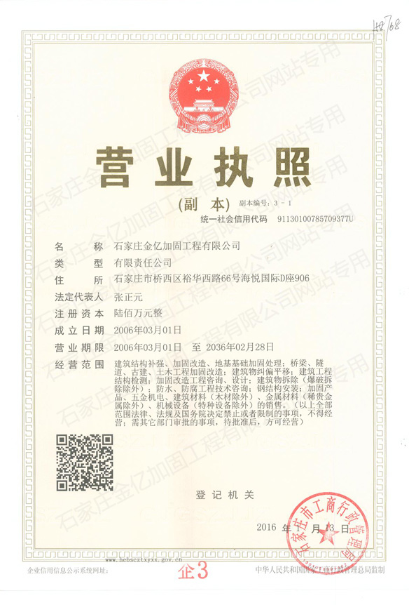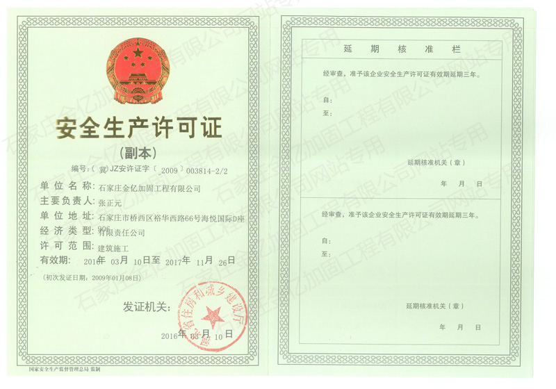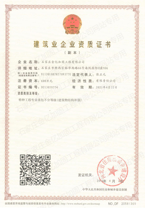 企業(yè)資質(zhì) --- 石家莊金億加固工程有限公司