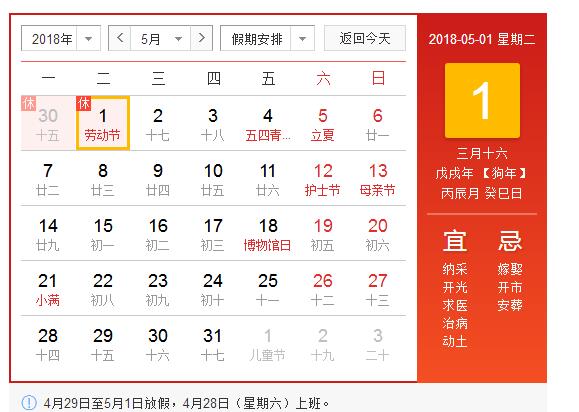 一、放假時(shí)間4月29日至5月1日(星期日至星期二)放假,共3天,4月28日(星期六)正常上班。