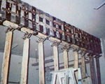 卸載→基層處理→預(yù)貼→調(diào)制結(jié)構(gòu)膠→涂膠→粘貼→固定加壓→固化養(yǎng)護(hù)→卸支撐、檢查、驗(yàn)收→防腐→粉刷