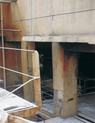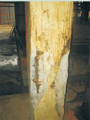 我國(guó)北方為使冬季施工的混凝土早強(qiáng),曾普遍攙加氯鹽,致使大量建筑物因鋼筋嚴(yán)重銹蝕而過(guò)早破壞;北方冬季要常灑鹽水化冰雪,許多鋼筋混凝土立交橋使用時(shí)間不長(zhǎng),卻已顯現(xiàn)鋼筋銹蝕和混凝土順筋脹裂的破壞現(xiàn)象,并日益加劇發(fā)展。銹蝕使鋼筋受力截面減小,銹蝕層膨脹使混凝土保護(hù)層沿鋼筋方向“順筋”開(kāi)裂,而后脫落。這不僅影響了美觀更埋下了安全隱患。