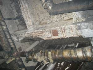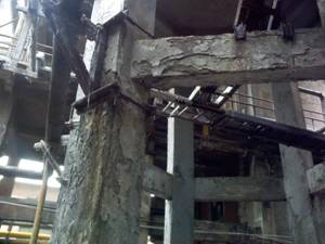 廠房的生產(chǎn)車間內(nèi)多數(shù)都有腐蝕性的液體和氣體,它們在長年的化工生產(chǎn)使用中,滲入到混凝土構(gòu)件內(nèi),導(dǎo)致鋼筋銹蝕,銹蝕層體積膨脹,而將混凝土脹裂。嚴(yán)重影響結(jié)構(gòu)的耐久性和安全性。