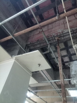 本工程新增機(jī)房下層為交管局營(yíng)業(yè)大廳和監(jiān)控室,因要對(duì)樓板底進(jìn)行加固,且營(yíng)業(yè)大廳不能長(zhǎng)時(shí)間休息。對(duì)施工進(jìn)度造成很大影響。